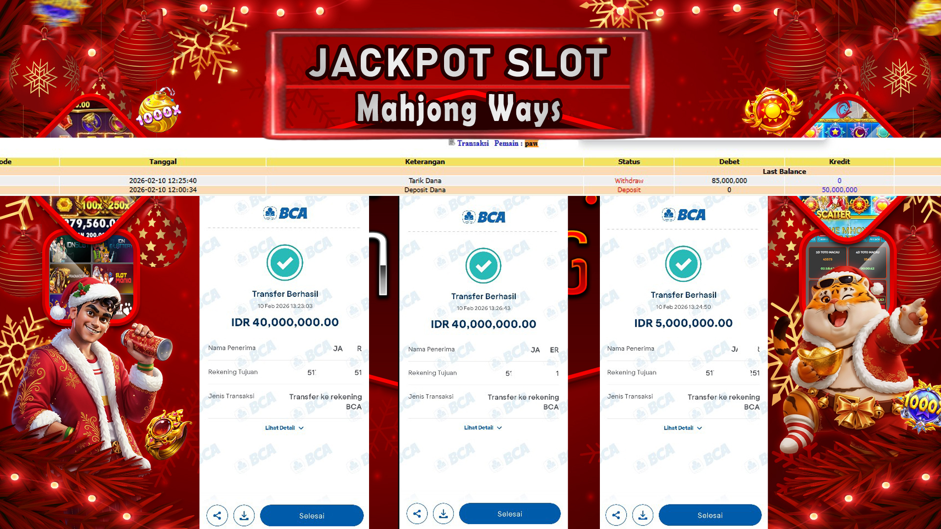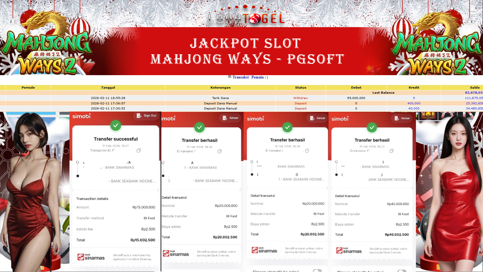 Selamat untuk User ID : puxxxxxx berhasil meraih kemenangan besar Rp.95,000,000,- di Permainan Mahjong Ways 2